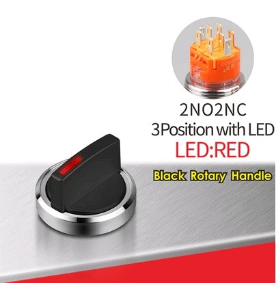 | LB19X5-X22Z-R5-24V-Black Поворотный переключатель Переключатель, диаметр 19 мм, RED, питание 5-24В, 2NO2NC, черный