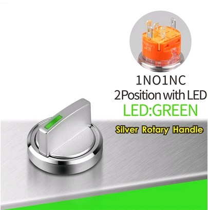 | LB22X5-X11Z-G5-24V Поворотный переключатель Переключатель, диаметр 22 мм, GREEN, питание 5-24В, 1NO1NC, цвет стальной