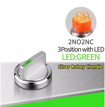 | LB19X5-X22Z-G5-24V Поворотный переключатель Переключатель, диаметр 19 мм, GREEN, питание 5-24В, 2NO2NC, цвет стальной