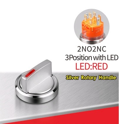 | LB19X5-X22Z-R5-24V Поворотный переключатель Переключатель, диаметр 19 мм, RED, питание 5-24В, 2NO2NC, цвет стальной