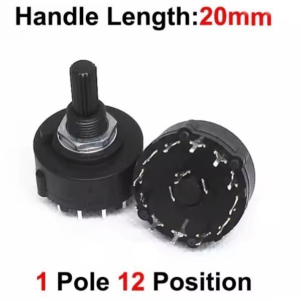 | RS26 Band Switch 1 Pole 12 20MM Поворотный переключатель Поворотный переключатель, 1 полюс, 12 положений, Длина оси: 20