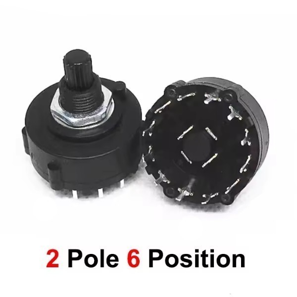 | RS26 Band Switch 2 Pole 6 15MM Поворотный переключатель Поворотный переключатель, 2 полюса, 6 положений, Длина оси: 15
