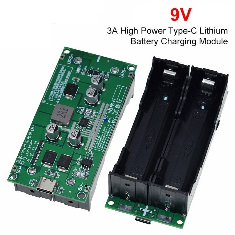 | UPS 18650 Power Supply Converter 9V Зарядные устройства для аккумуляторов Модуль Type-C для сборки миниатюрного источника бесперебойного питания на основе литиевых батарей 18650 и источника питания 5В. Выходное напряжение 9В.
