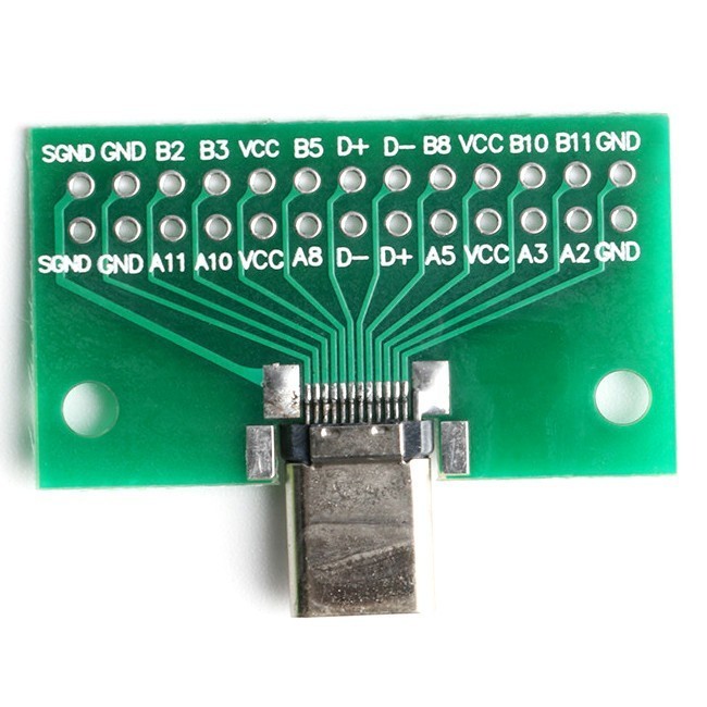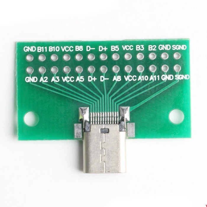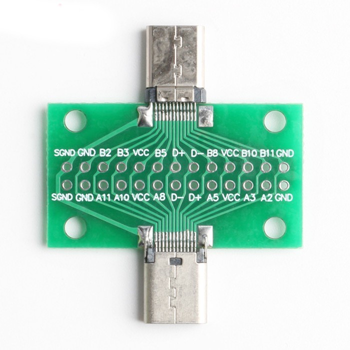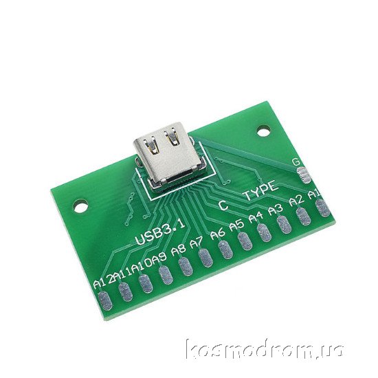 | USB-TYPE-C-ADAPTER USB разъем USB 3.1 Type-C (гнездо, female): под пайку DIP 12-pin, 2.54 мм. 40 x 25 мм.