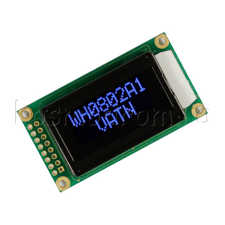 | WH0802A1-PLL-CWVE Жидко-кристаллическая матрица VATN ЖК-дисплей, VATN, 8 символов 2 строки, цвет подсветки: синий, Интерфейс:6800 interface (ST7066 IC), размеры: 58х32 мм, Размер символов 2,96х5,56 мм, English/Cyrillic Font