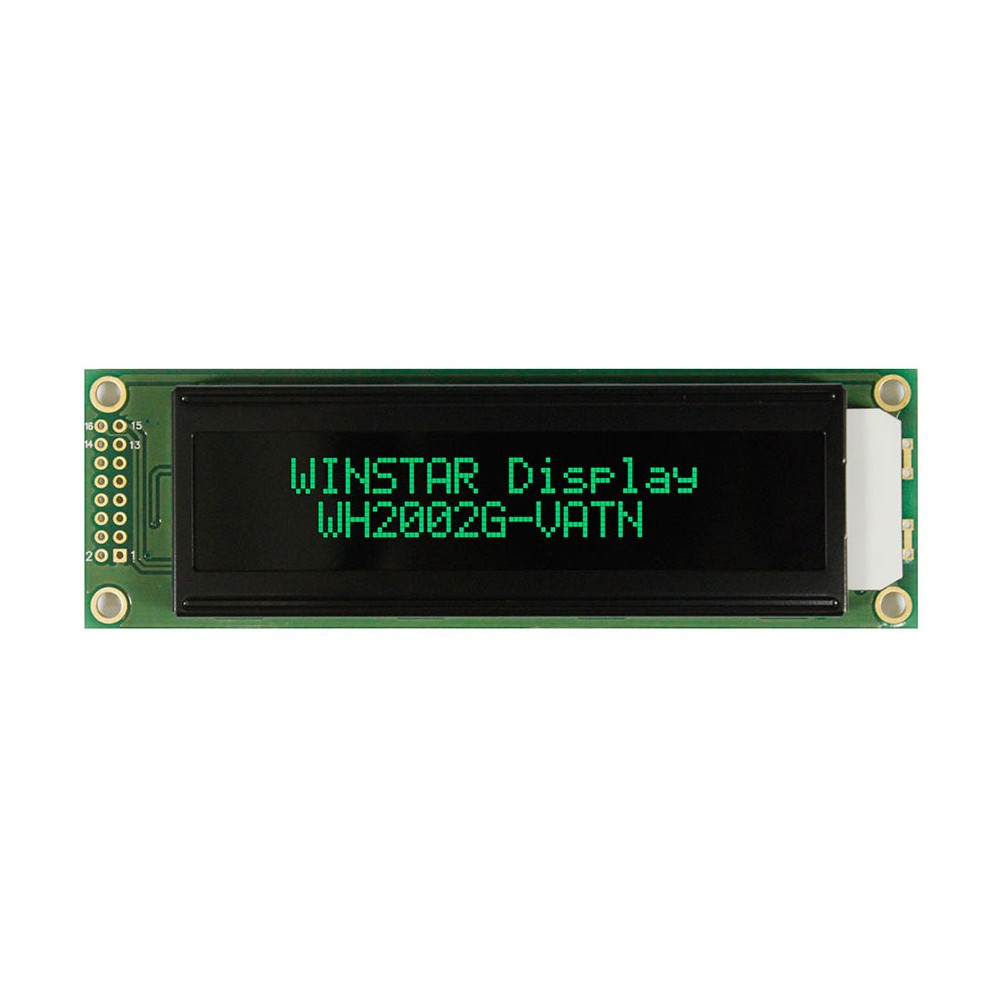 | WH2002G-GLL-CTVE Жидко-кристаллическая матрица VATN ЖК-дисплей, VATN, 20 символов 2 строки, цвет подсветки: зеленый, размеры: 115х36 мм, Размер символа: 3,2х5,55 мм, English/Cyrillic Font