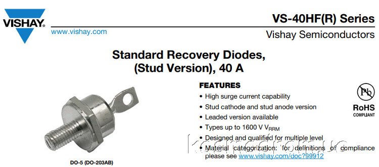 | VS-40HFR60 Диод Модуль диода, 600 В, 40 А, 1.3 В