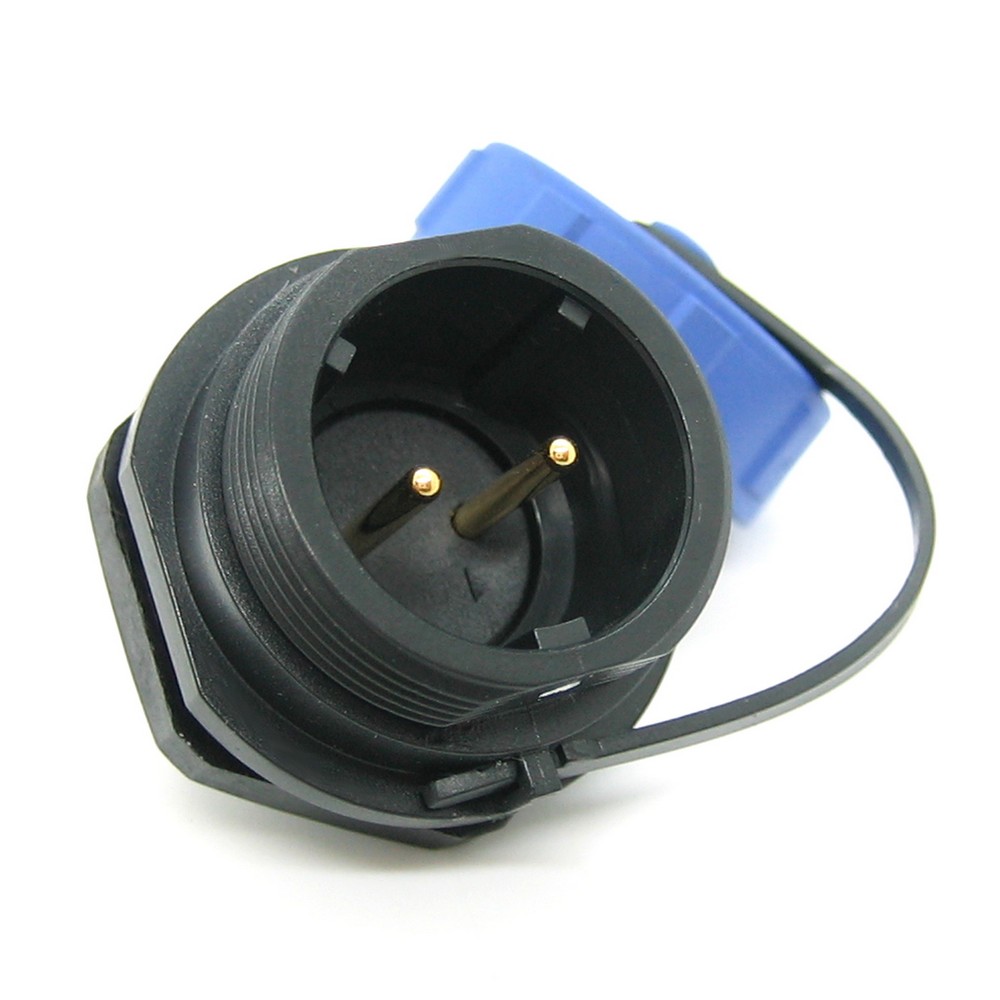 | W17B2-02 Круглые герметичные разъемы IP68 SP17, вилка, PIN:2, IP68, 500В, 10A, пайка на панель,с защитной крышкой