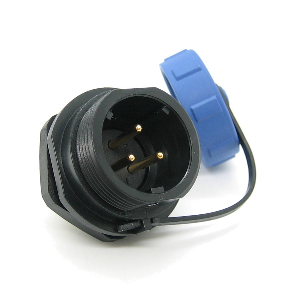 | W17B2-03 Круглые герметичные разъемы IP68 SP17, вилка, PIN:3, IP68, 500В, 10A, пайка на панель,с защитной крышкой