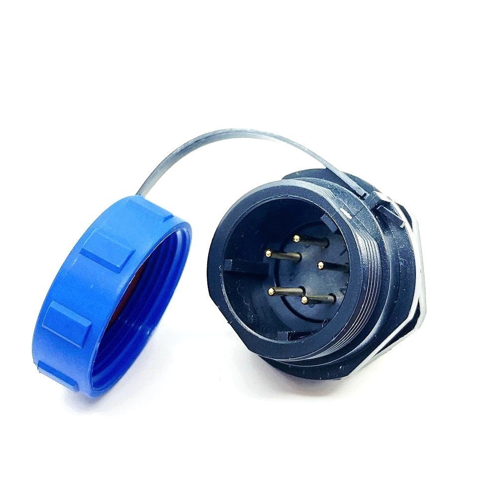 | W17B2-05 Круглые герметичные разъемы IP68 SP17, вилка, PIN:5, IP68, 500В, 5A, пайка на панель,с защитной крышкой