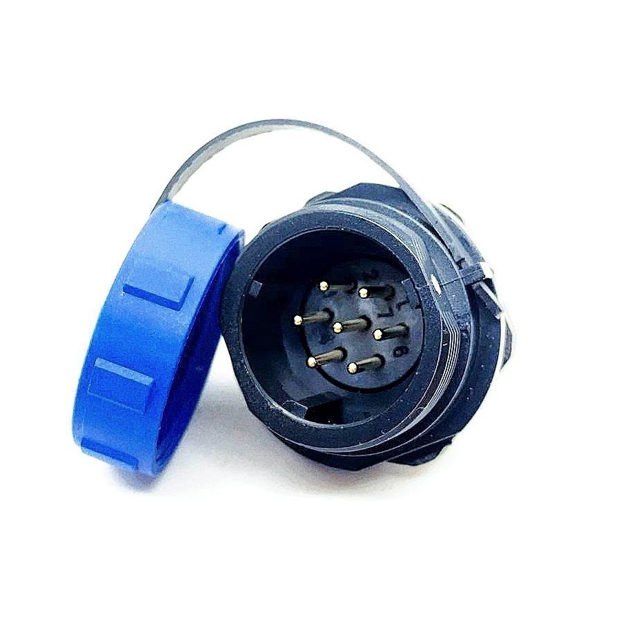 | W17A2-07 Круглые герметичные разъемы IP68 SP17, гнездо, PIN:7, IP68, 500В, 10A, пайка на панель,с защитной крышкой