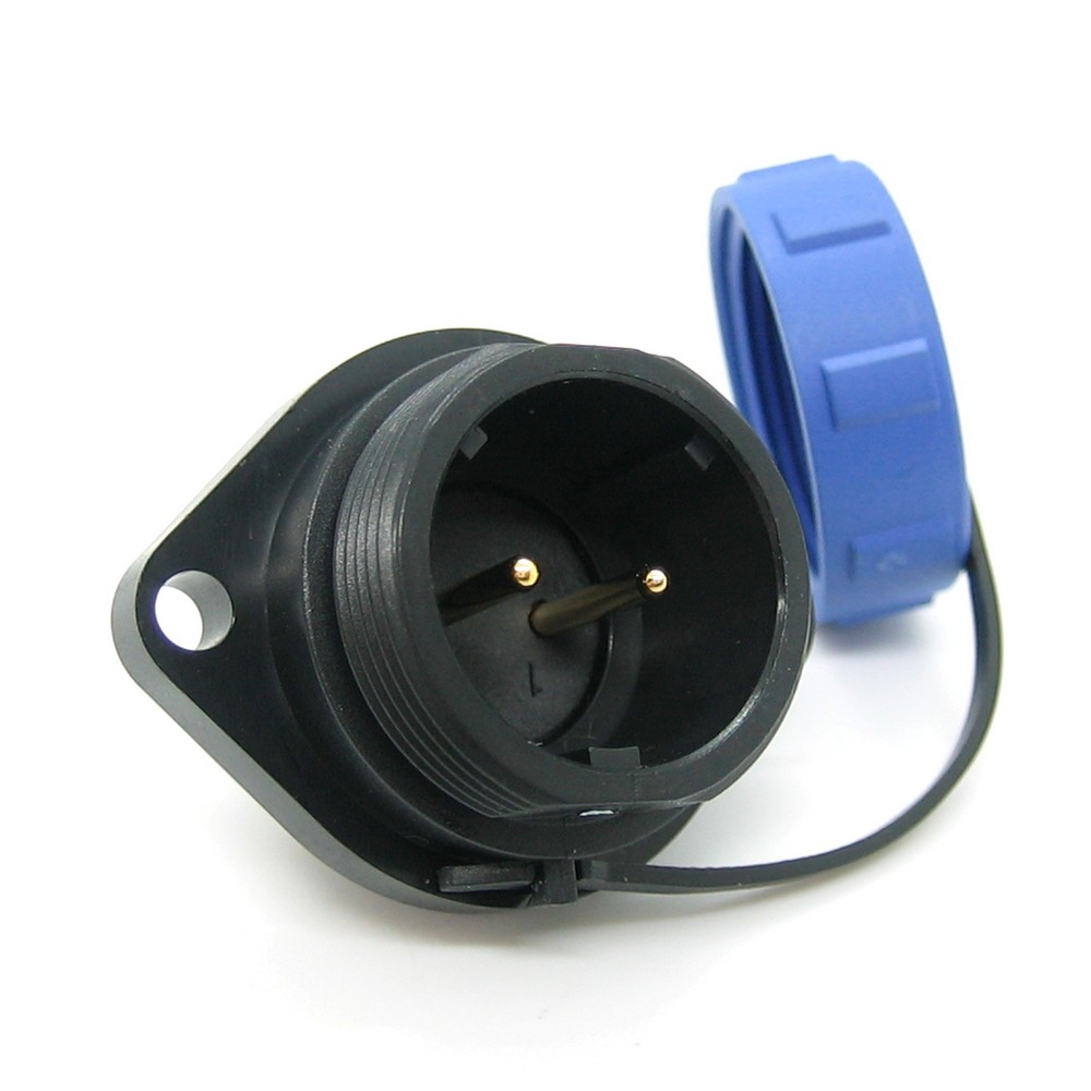 | W17B3-02 Круглые герметичные разъемы IP68 SP17, вилка, PIN:2, IP68, 500В, 10A, soldering,for Flange,с защитной крышкой, с фланцами