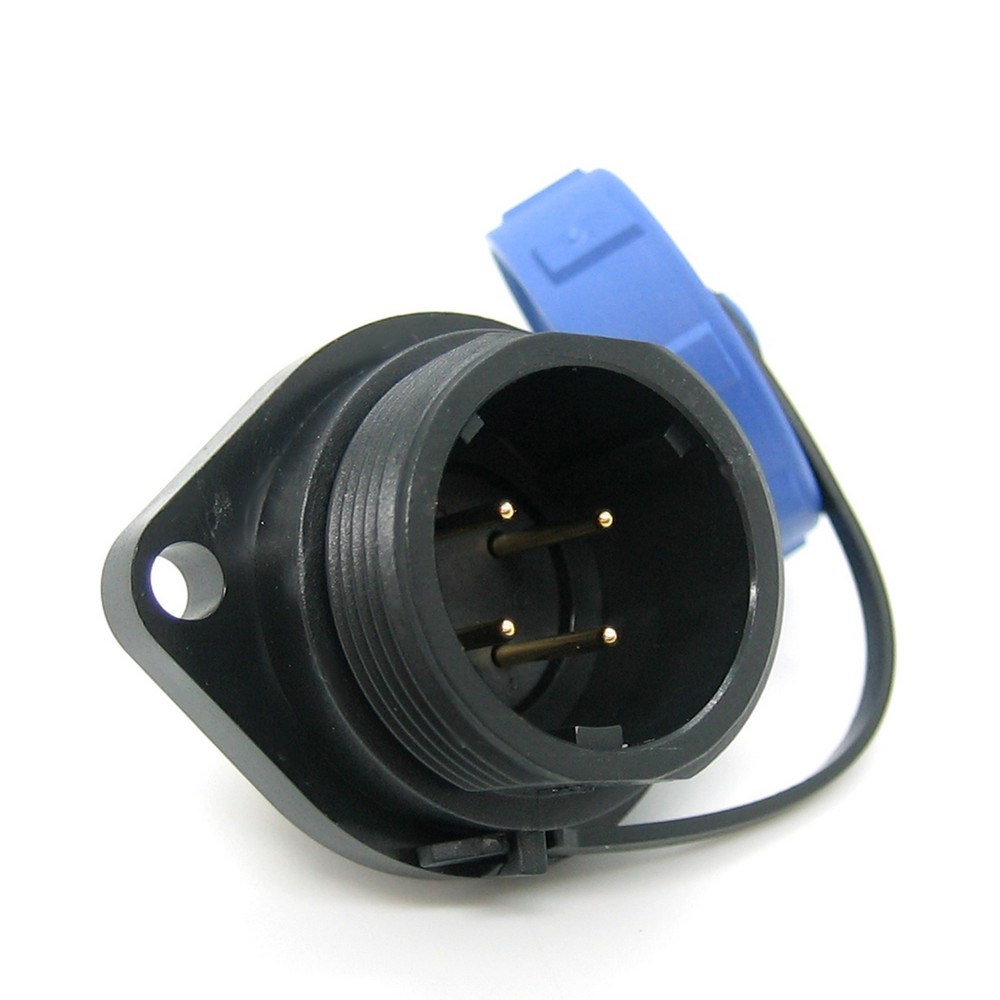 | W17B3-04 Круглые герметичные разъемы IP68 SP17, вилка, PIN:4, IP68, 500В, 5A, soldering,for Flange,с защитной крышкой, с фланцами