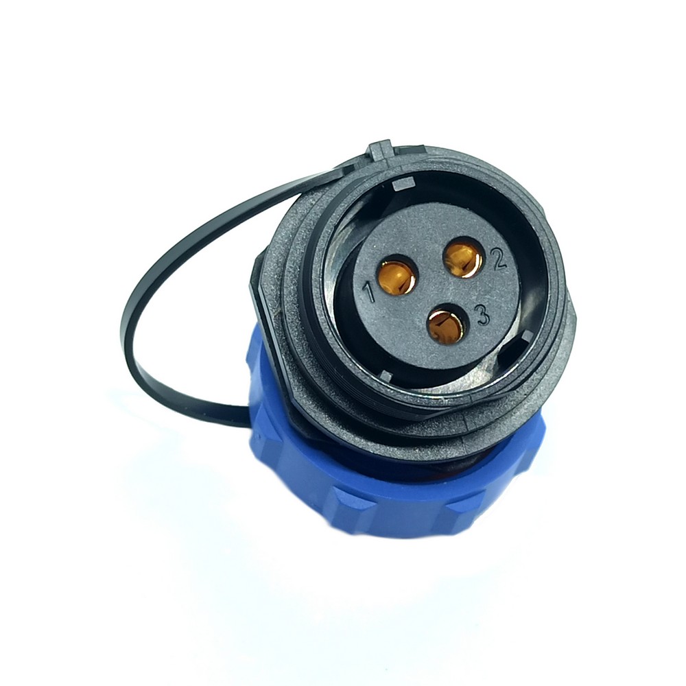 | W21A2-03 Круглые герметичные разъемы IP68 SP21, гнездо, PIN: 3, IP68, пайка на панель, 500В, с защитной крышкой