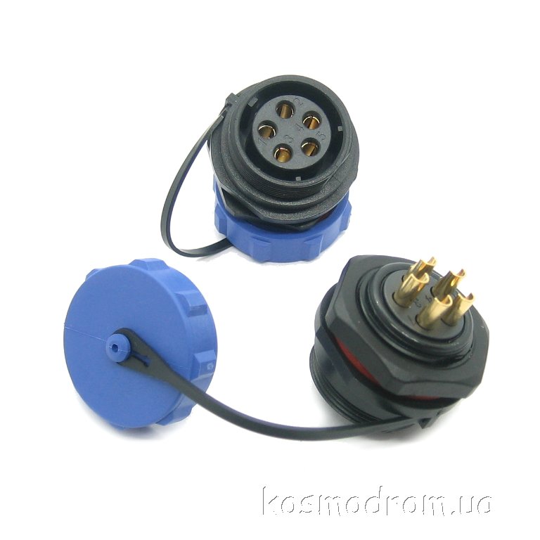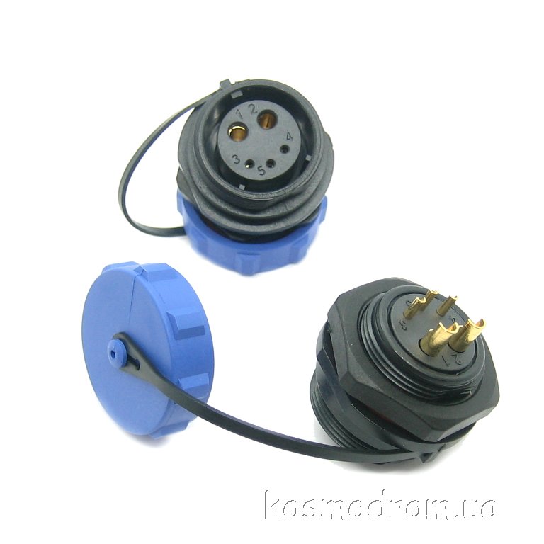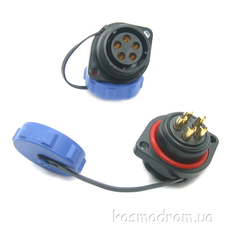 | W21A2-05C Круглые герметичные разъемы IP68 SP21, гнездо, PIN: 5, IP68, пайка на панель, 500В, с защитной крышкой