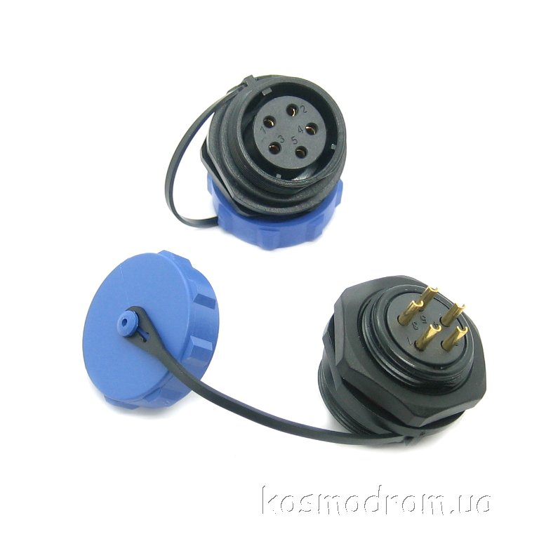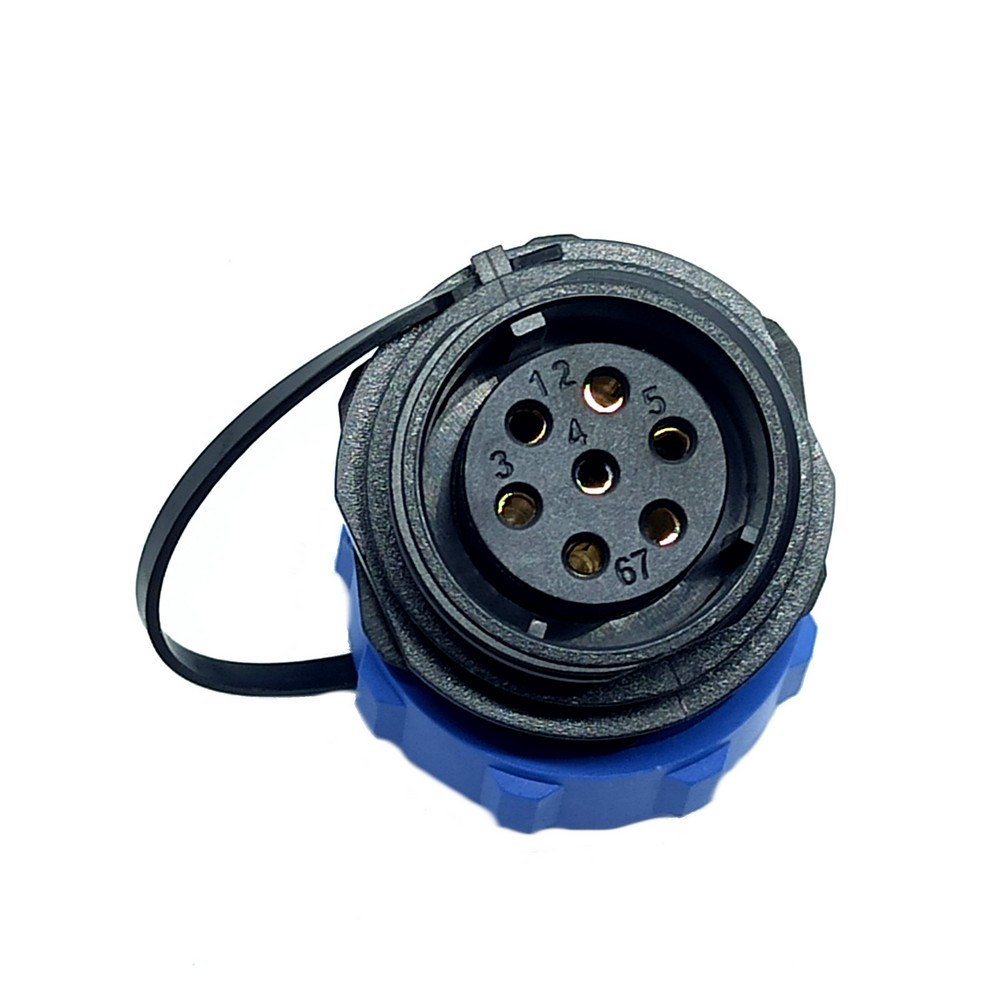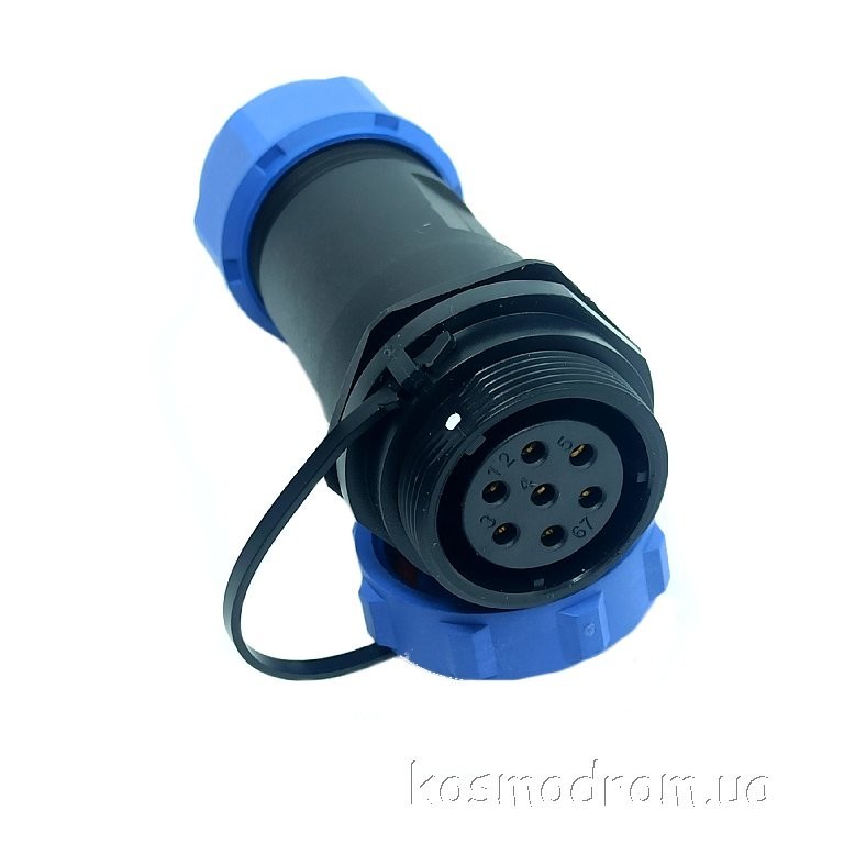 | W21A4-07 Круглые герметичные разъемы IP68 SP21, гнездо, PIN: 7, IP68, диаметр кабеля: 7...12мм, пайка, на провод, 500В с защитной крышкой