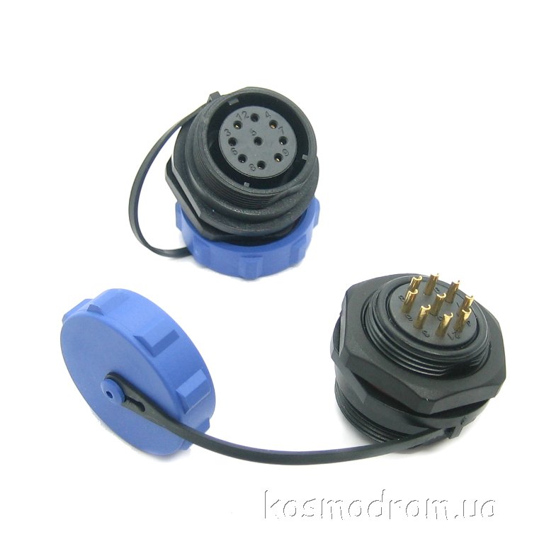 | W21A2-09 Круглые герметичные разъемы IP68 SP21, гнездо, PIN: 9, IP68, пайка на панель, 500В, с защитной крышкой