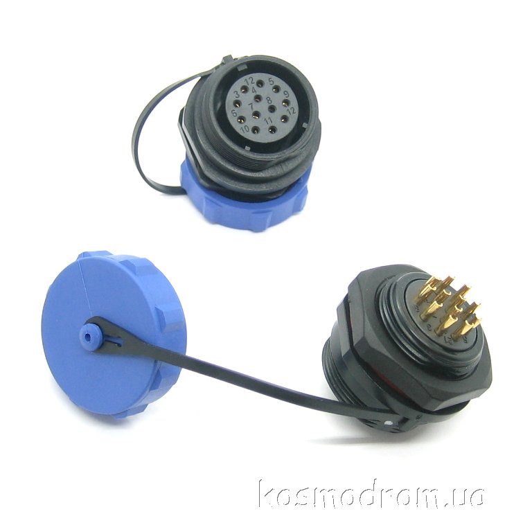 | W21A2-12 Круглые герметичные разъемы IP68 SP21, гнездо, PIN: 12, IP68, пайка на панель, 400В, с защитной крышкой