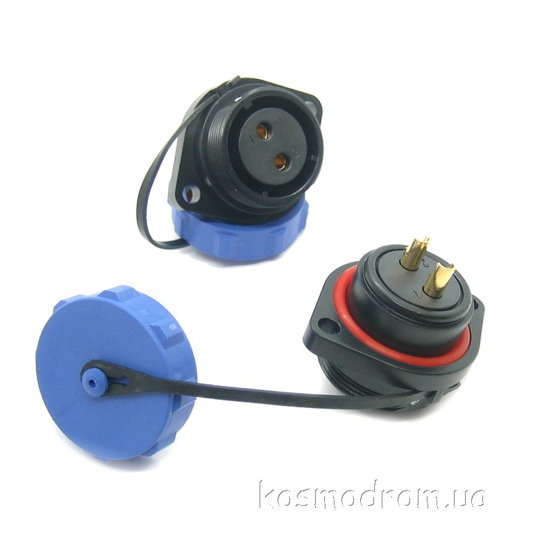 | W21A2-02 Круглые герметичные разъемы IP68 SP21, гнездо, PIN: 2, IP68, пайка на панель, 500В, с защитной крышкой