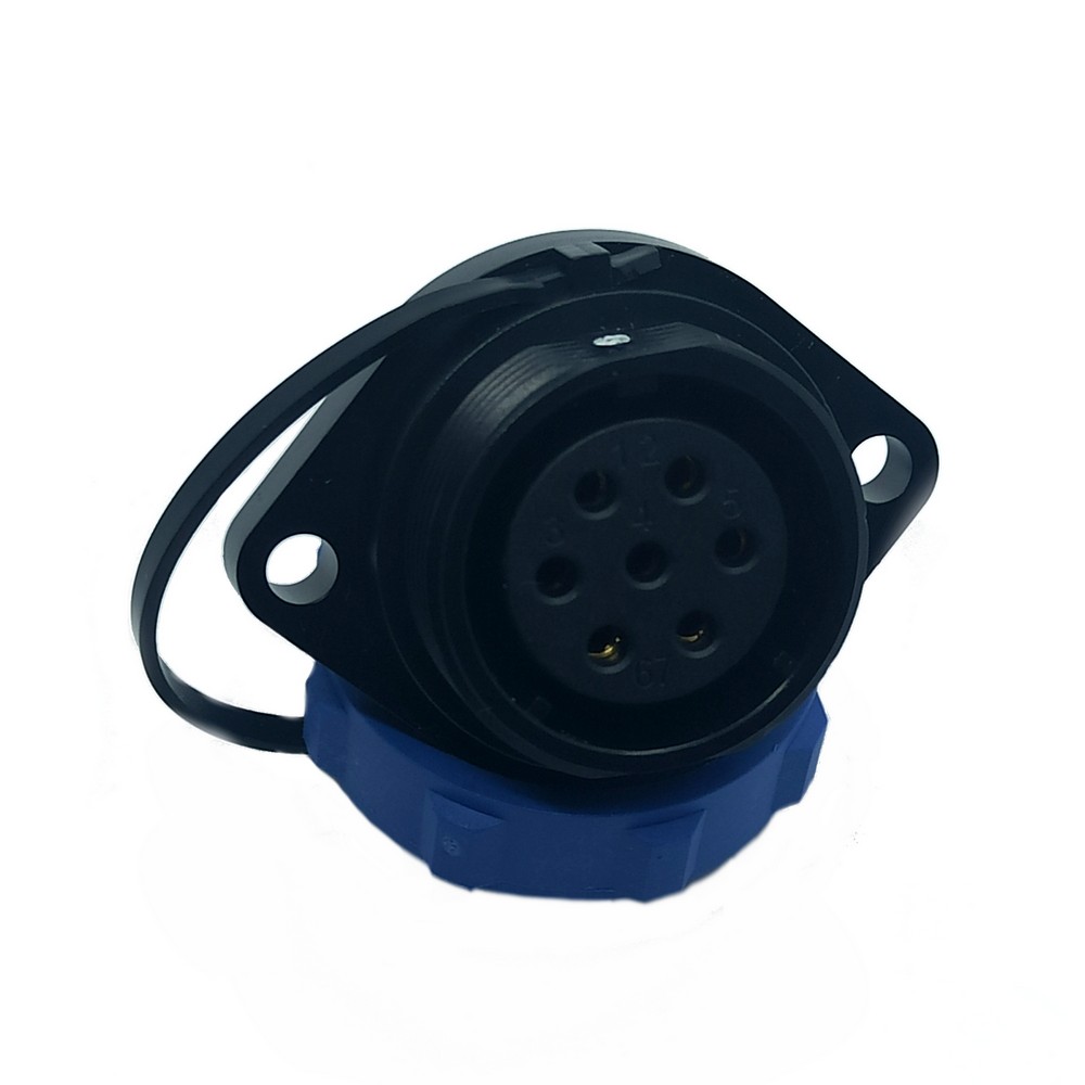 | W21A2-07 Круглые герметичные разъемы IP68 SP21, гнездо, PIN: 7, IP68, пайка на панель, 500В, с защитной крышкой