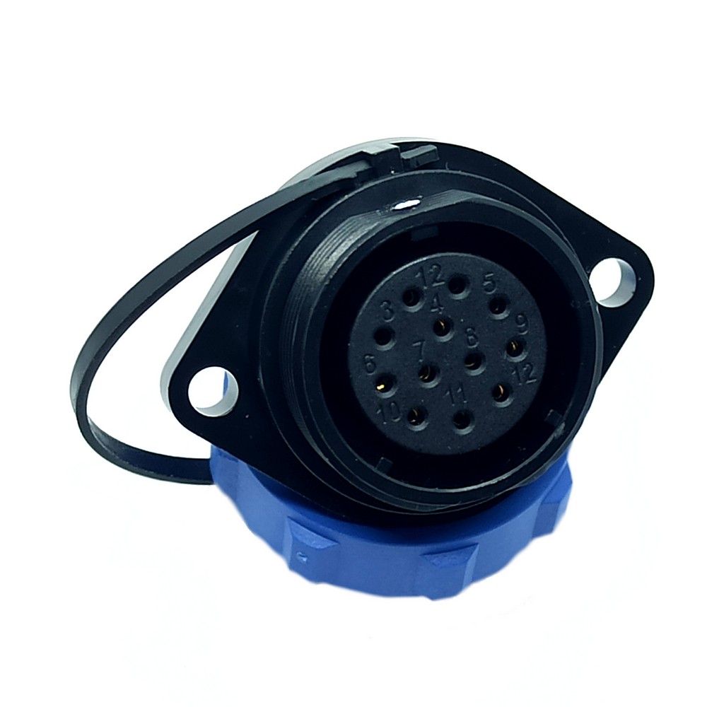 | W21A3-12 Круглые герметичные разъемы IP68 SP21, гнездо, PIN: 12, IP68, пайка на панель, 400В, с фланцами
