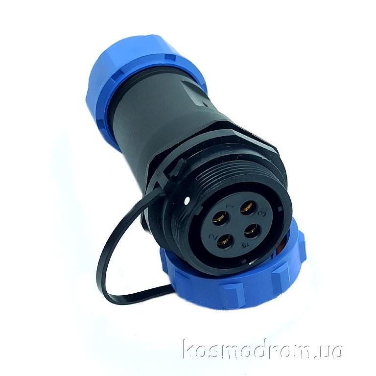 | W21A4-04 Круглые герметичные разъемы IP68 SP21, гнездо, PIN: 4, IP68, диаметр кабеля: 7...12мм, пайка, на провод, 500В с защитной крышкой
