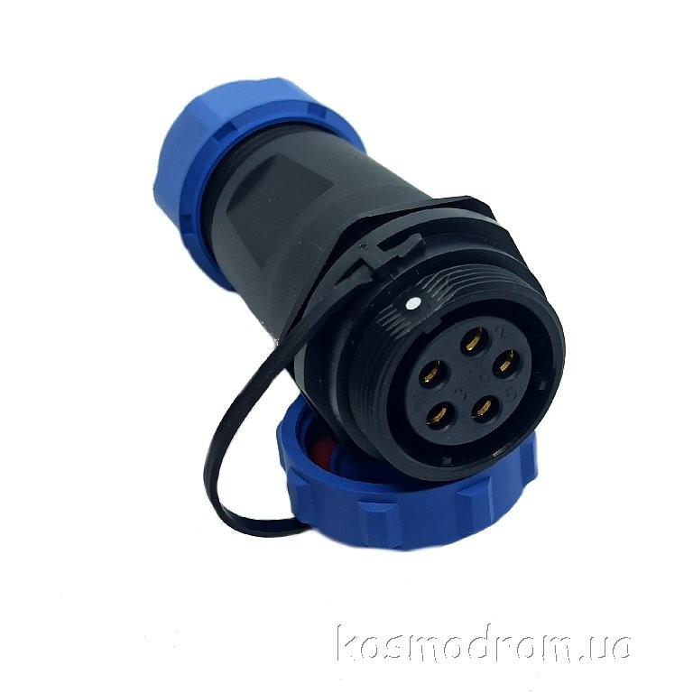 | W21A4-05C Круглые герметичные разъемы IP68 SP21, гнездо, PIN: 5, IP68, диаметр кабеля: 7...12мм, пайка, на провод, 500В с защитной крышкой