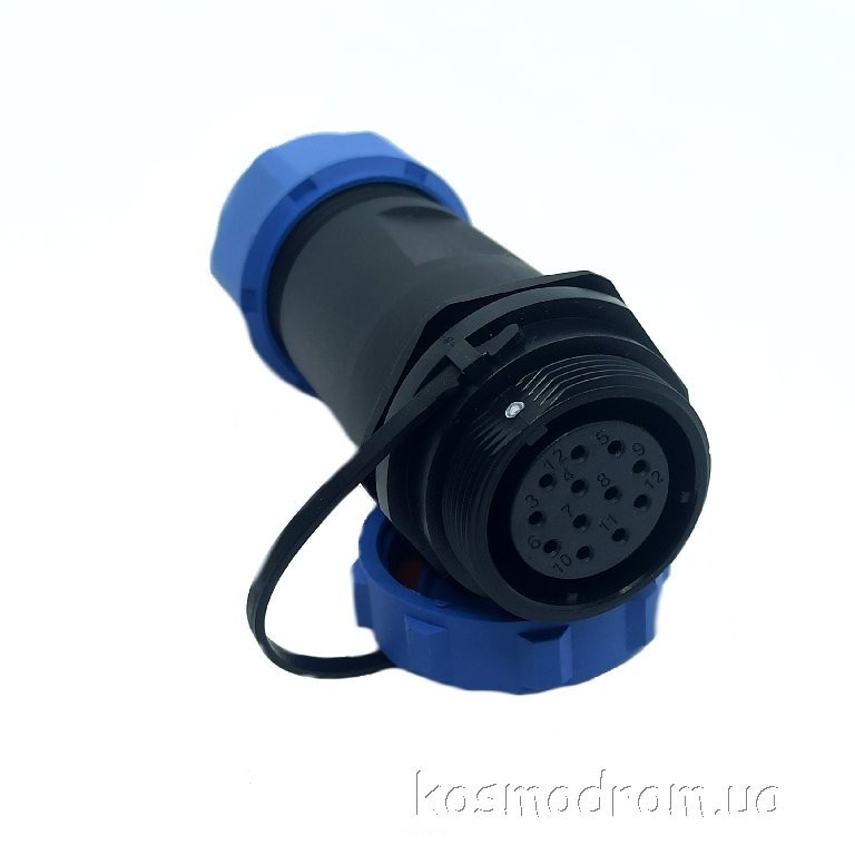| W21A4-12 Круглые герметичные разъемы IP68 SP21, гнездо, PIN: 12, IP68, диаметр кабеля: 7...12мм, пайка, на провод, 400В с защитной крышкой