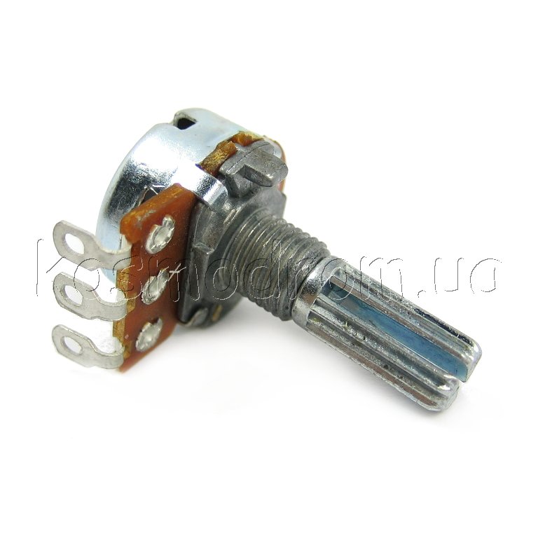 | WH148-1B-3-18T-A103-L20 Резистор однооборотный Потенциометр осевой, однооборотный, с насечкой. Характеристика: логарифмическая, 10KОм, Длина вала: 20 мм.