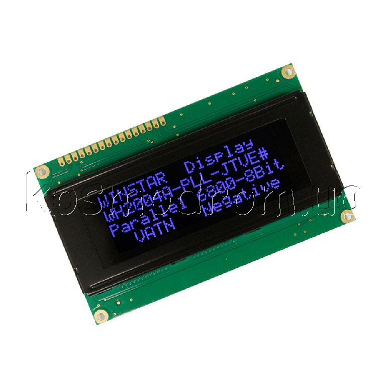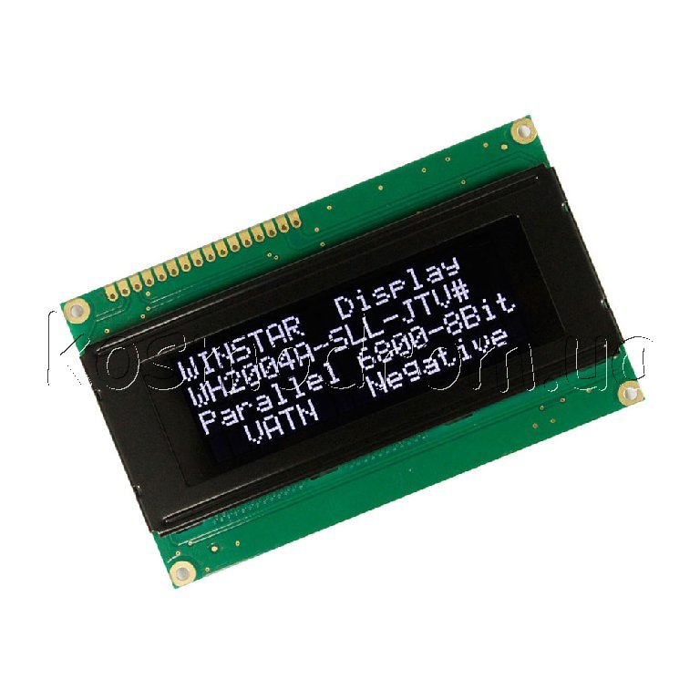 | WH2004L-TMI-CTW Жидко-кристаллическая матрица символьный - 20 символов x 4 строк. размеры модуля, мм: 146.0 x 62.5. размер видимой области, мм: 123.5 x 43.0 (диагональ: 5.1 ? = 13.1 см). Размер символа: 4,84х9,22 мм, English/Cyrillic Font