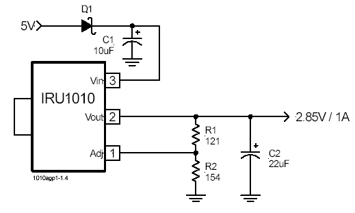 IRU1010 – трехвыводной регулируемый стабилизатор с малым падением и выходным током до 1А. Он специально разработан для обеспечения хорошо стабилизированным напряжением приложений с низковольтными микросхемами, например, терминация высокоскоростных шин и слаботочное питание 3.3В логики.