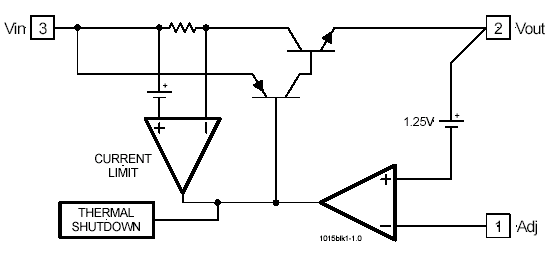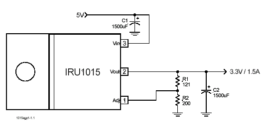 IRU1015 – трехвыводной регулируемый стабилизатор с малым падением и выходным током до 1.5А. Он специально разработан для обеспечения хорошо стабилизированным напряжением приложений с низковольтными микросхемами, например, питание процессора 486DX4, питание ввода-вывода P55, а также терминация высокоскоростных шин и слаботочное питание 3.3В логики.