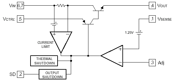 7.5A регулируемый стабилизатор положительного напряжения с очень малым падением с входом выключения